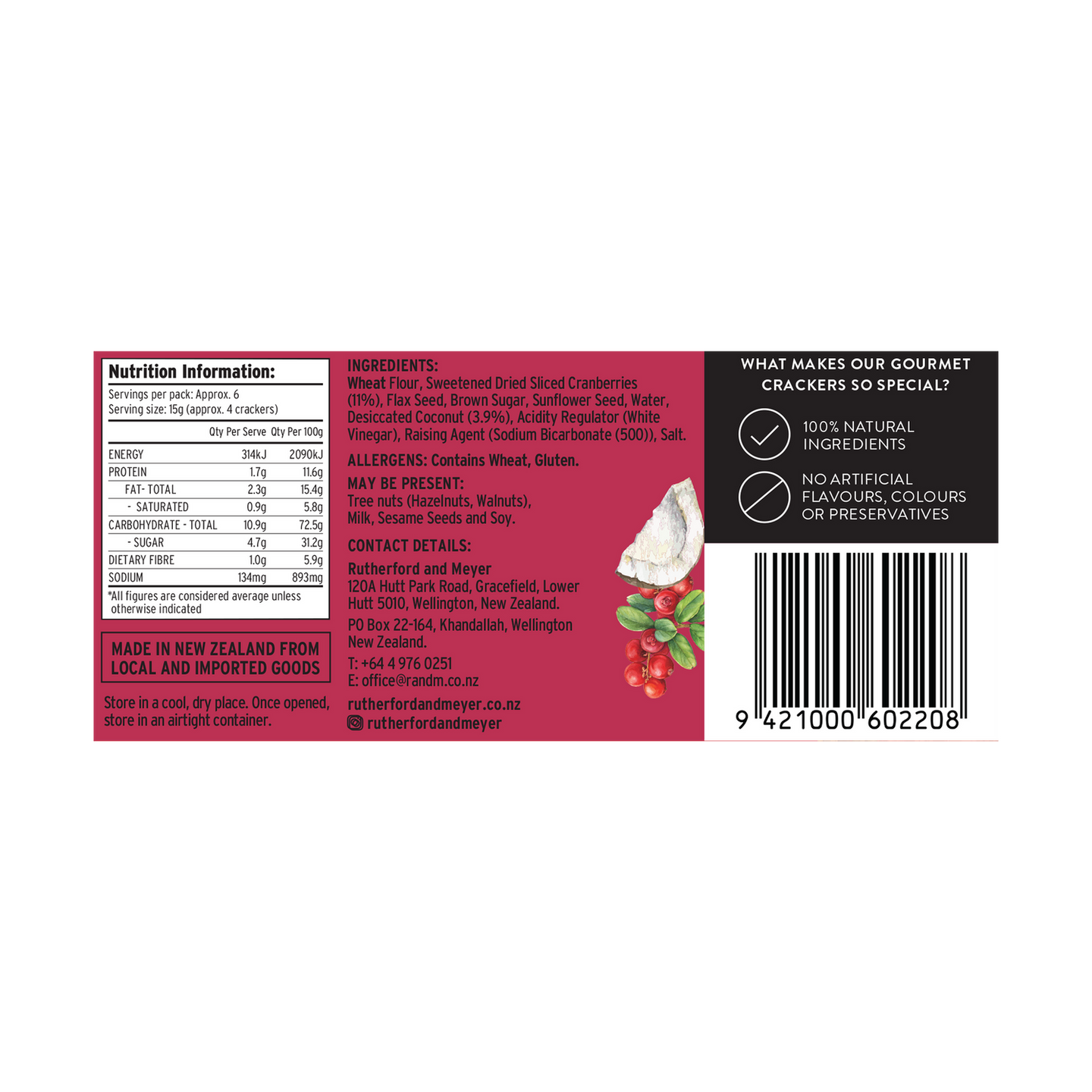 Gourmet Crackers - Cranberry & Coconut